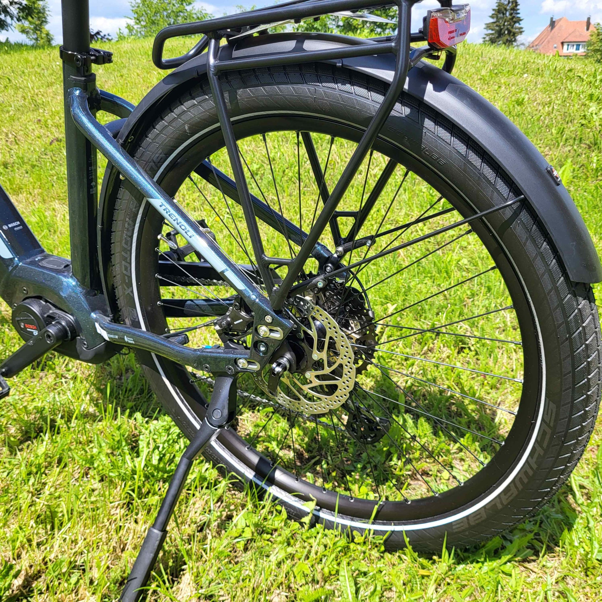 Zur Grundausstattung gehören praktische Details, die das Leben leichter machen: Schutzbleche, die dich bei Regenfahrten vor Spritzwasser schützen, sowie ein stabiler Gepäckträger, der ausreichend Platz für Einkäufe oder Reisegepäck bietet. Die integrierte Parkstütze erlaubt es dir, das Fahrrad sicher abzustellen – perfekt für kleine Pausen unterwegs.
